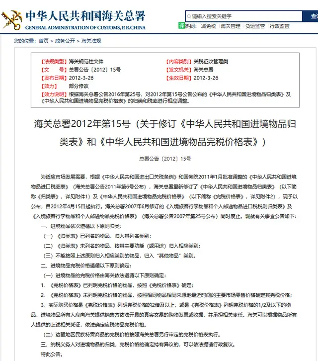 參照《中華人民共和國進(jìn)境物品完稅價格表》和《歸類表》。