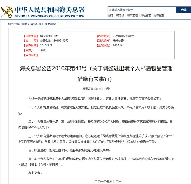 海關(guān)總署的這項(xiàng)新政策放寬了個人物品郵寄的限值,便利了跨境購物